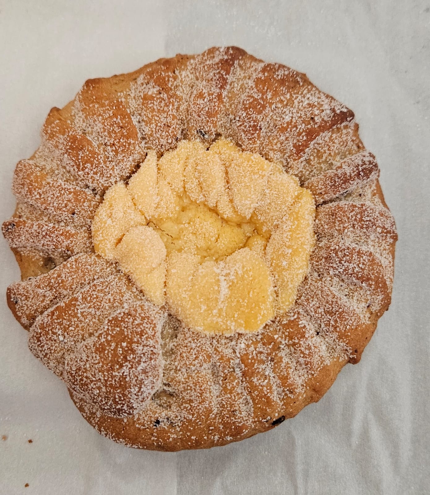 Como su nombre lo indica este pan tiene la forma de un sol. Está compuesto de dos diferentes masas lo cual le dan una textura interesante y dos colores distintos.